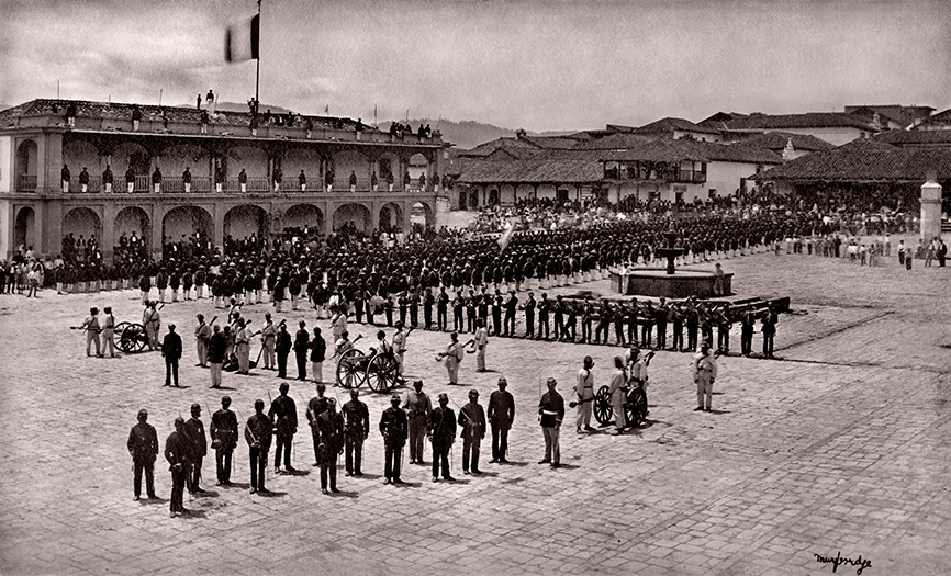 Este fotógrafo llega a Guatemala en 1875 cuando el gobierno liberal, con sus ideales, valores e innovaciones de corte positivista, inauguraba la era del progreso. El cultivo del café desplazaba en importancia a la cochinilla y la apertura de vías de comunicación –el ferrocarril y el Puerto de San José– atrajeron a muchos inversionistas extranjeros. Muybridge mismo fue, efectivamente, un agente de cambio al dar a conocer nuestro paisaje al mundo de aquella época. A través de sus fotos, vemos parajes y personajes que nos invitan a un viaje en el tiempo que sólo se había registrado fotográficamente a través de retratos, pues no había fotos de paisajes.